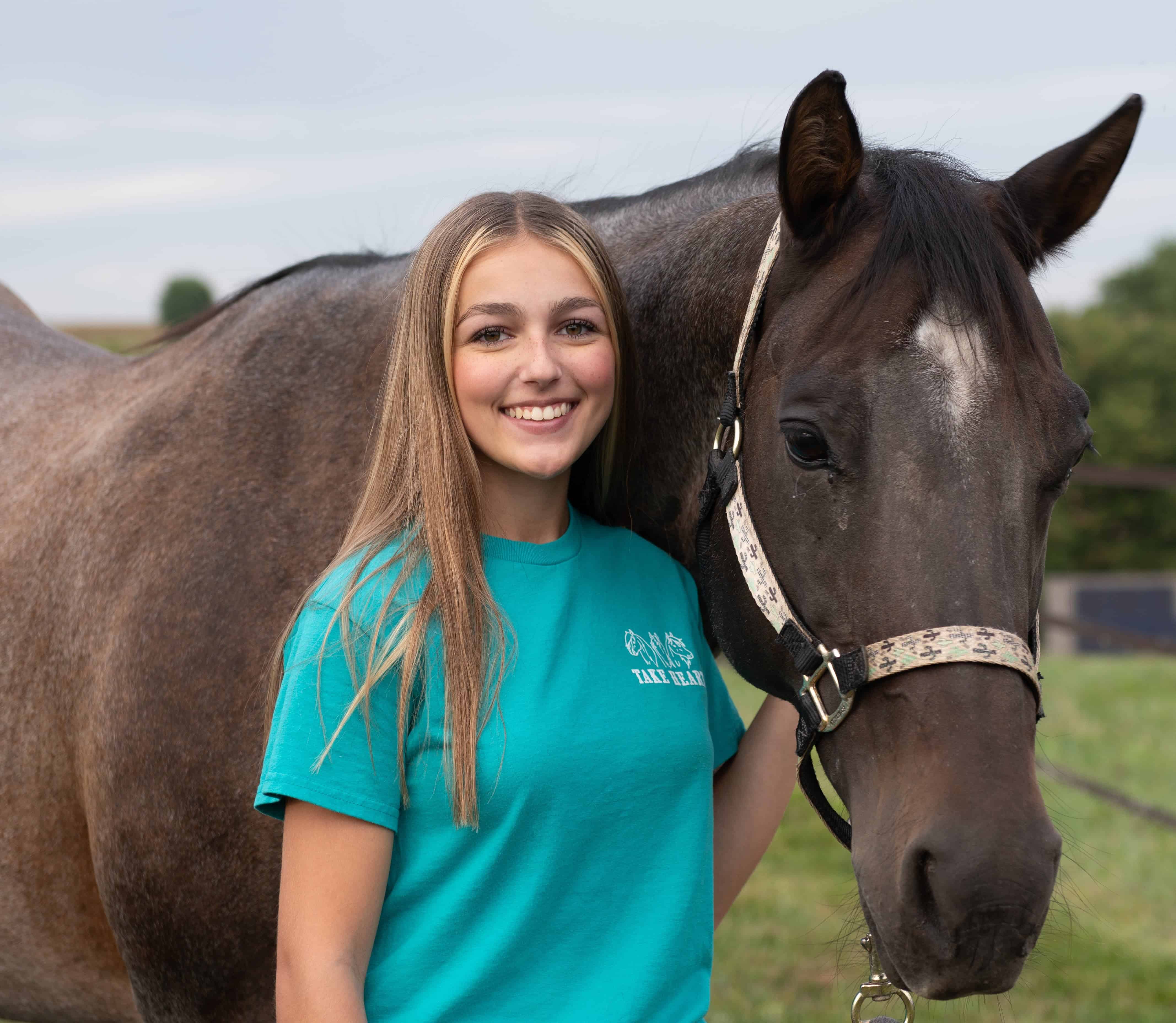 Natalee is our Barn Manager. She started working at Take Heart November of 2022. Natalee leads our barn team and is passionate about keeping our horses happy and healthy. She has a special connection with Hank.