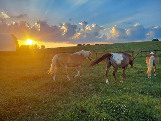 The horses live mostly outside in the fields, except during feeding/care or extreme weather. Living naturally keeps them the healthiest as they get regular movement, social interaction, and fresh air. Studies show that horses kept in stalls regularly are more prone to joint and leg issues, digestive issues, and neurotic issues such as cribbing or weaving. Those horses are also more prone to accidents in the field because they are so excited to be out. When being out is the norm, horses are relaxed, and bonus – they are happy to see you, because you are not robbing them of their turnout time.