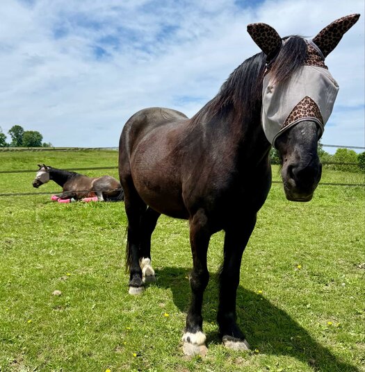 On the other side of the fence, Goose was lying down, his eyes soft and steady. Artax, my own grounding point from that morning, was grazing just a few feet away. The chestnut twins stood close, alert but calm. Inside the therapy pasture, Remy and Noble had moved near without a sound.