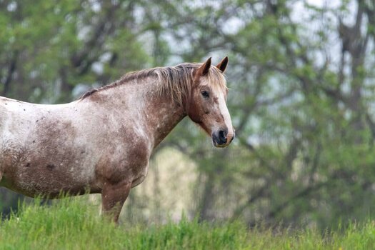 Color: White with Chestnut Roan Speckles